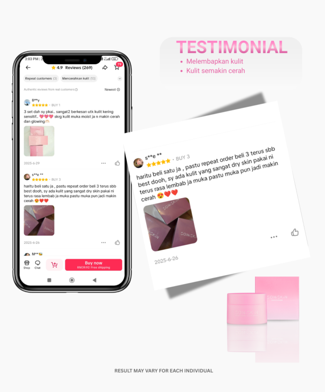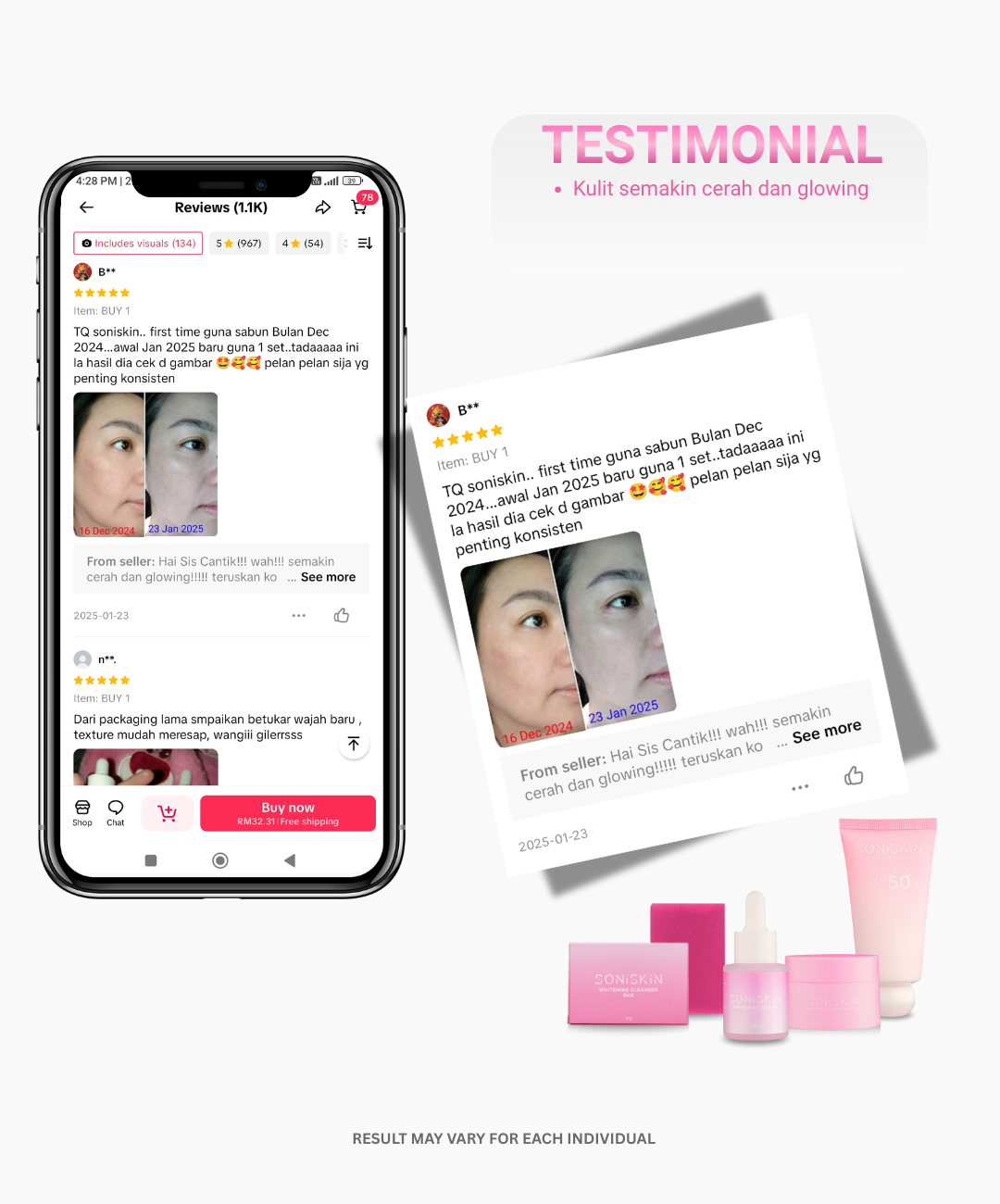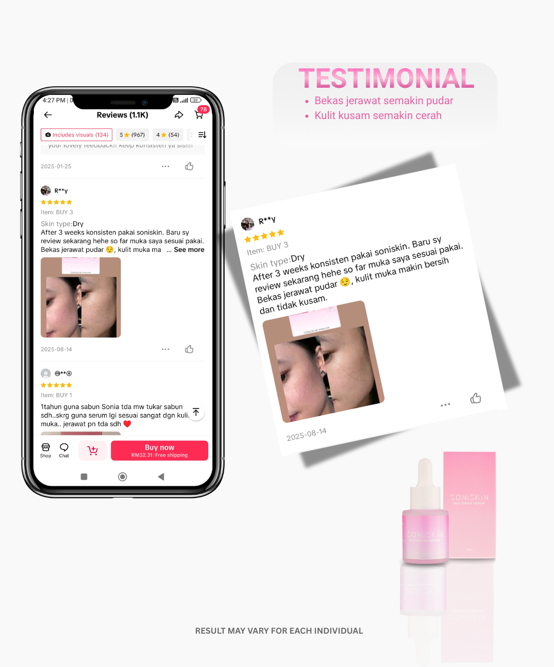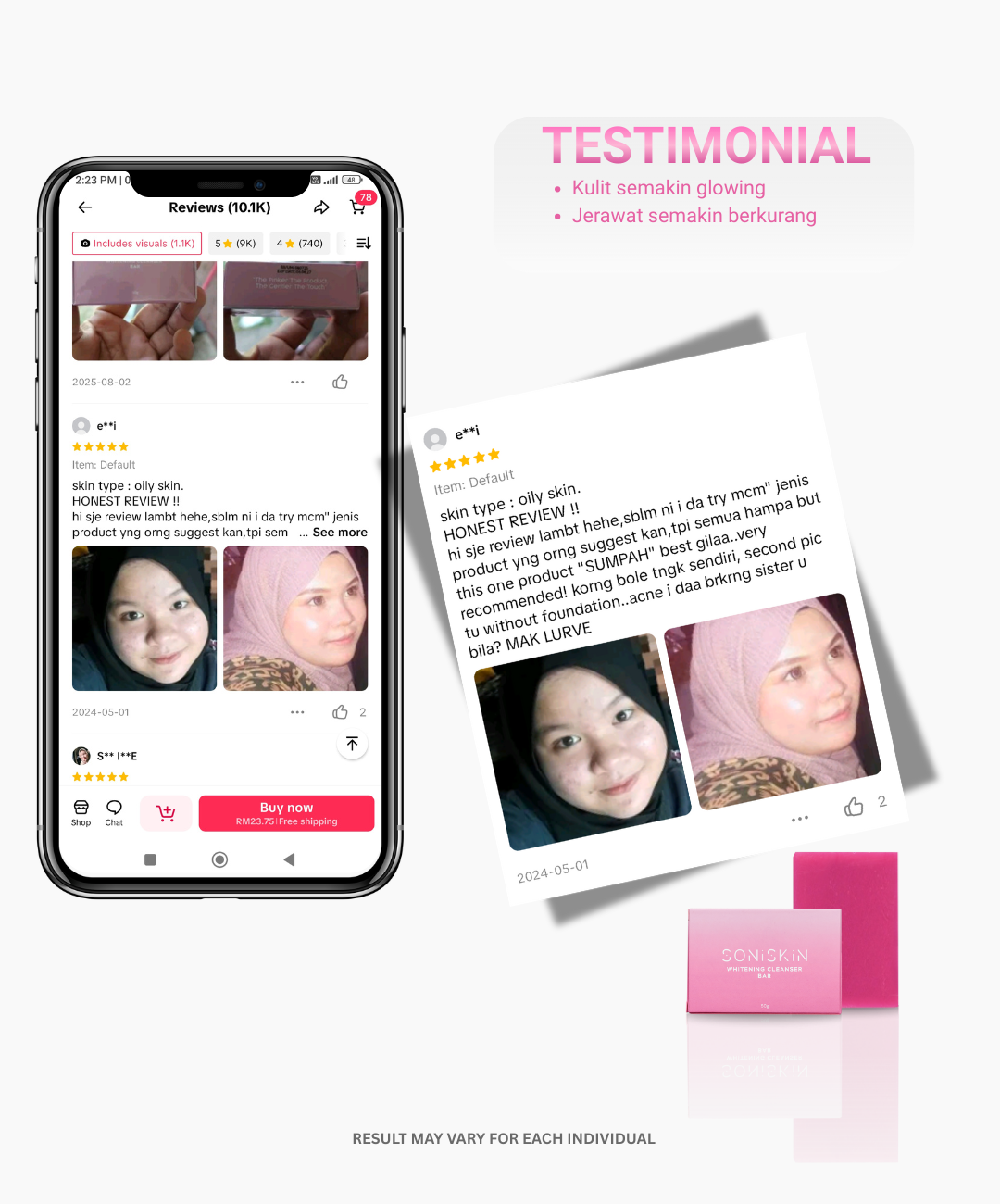 @soniskin_official Replying to @Eyqa_syafiqa Sudah beli di tiktok tapi datang beli lagii😭, thank you dear. Honest feedback yang terbaik✨ siapa ada masalah kulit yang sama cuba share di comment? #soniskinskincare #soniskinofficial #soniskinwhiteningcleanser